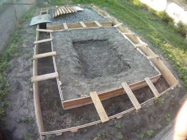 Бревно я заготовил и ошкурил заранее. Материал просушивался на улице на протяжении пяти месяцев. Баню я планирую сделать их двух частей – парная и мойка складываются из бревна, а комната отдыха – на каркасе из дерева. В итоге получатся два помещения 3*3 метра. Для песчаного грунта я установил ленточный фундамент. Под фундамент вырываются траншеи (глубина – 600 мм), затем выставляется опалубка. Ширину ленты специально брал с запасом (300 – 350 мм). Для армирования понадобились четыре 12-миллиметровых прутка. Бетона заказал чуть больше, чем нужно. Поэтому вместо стандартной ленты пришлось залить плиту с лентой. Через полторы недели приступил к сборке сруба. Его площадь – 3*3, шестиметровые бревна ушли без остатка. Последовательность действий такая: 1. Укладывается гидроизоляционный слой (у меня это 2 слоя рубероида). 2. На гидроизоляции размещается 1-ый венец из бруса (размеры – 200*200 мм). 3. Для защиты от продувания все углы выполняются в «ласточкин хвост». 4. Бревна обрабатываются в