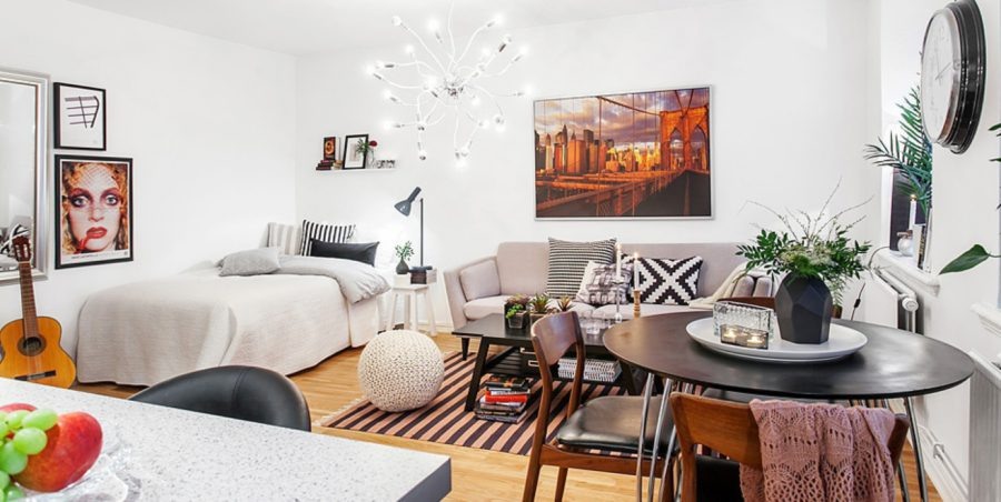Здесь лучшим вариантом выступает нейтральная комбинация оттенков, которая помогает избегать раздражающей атмосферы для жильцов. Идеально подходят мягкие и спокойные оттенки, которые можно разбавить ненавязчивыми яркими деталями. Это могут быть подушки, шторы и декор насыщенных цветов.