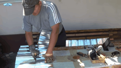 Если у вас остались куски профнастила используйте их, если нет - можно купить 1 лист, его хватит с лихвой. Берем ножницы по металлу, и нарезаем полоски высотой 15-20 см. В зависимости от необходимой высоты. Количество полос зависит от размера клумбы, решайте сами. Накладываем одну полосу профнастила на другую, берем шуруповерт или дрель. Просверливаем два отверстия насквозь. Два просверленных листа соединяем вместе заклепочником. Соединяем в данном случае таких 5 шт. и получаем красивую и аккуратную клумбу. Чем больше полос вы соедините, тем больший размер клумбы получится. Ровно таким же методом соединяем внутреннюю звезду. Если выгнуть её в обратную сторону получится красивее, но клепки будут торчать наружу. Поэтому выгибаем её не звездой, а ромашкой. Засыпаем землей и засаживаем цветами.