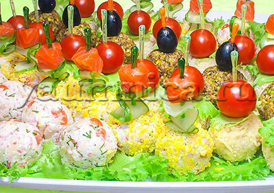 Начинаем готовить канапе на шпажках.