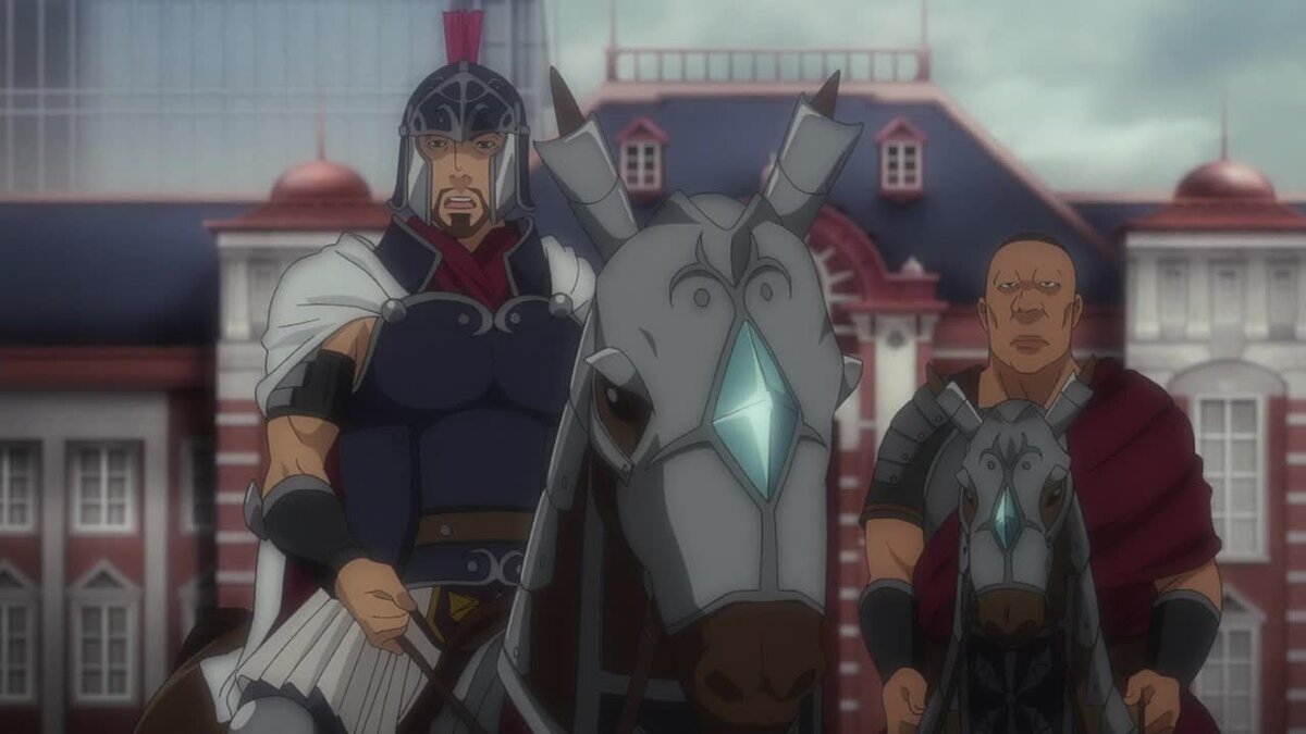 Начальство приходит к выводу, что на данный момент у них практически нет ни какой информации об этом мире, а значит нужно отправить отряд солдат на разведку, командиром которого и будет главный герой Йоджи Итами. Его целью является, как банальная разведка местности, так и налаживание связей и изучение культуры местного населения. При этом нужно вести себя осторожно, что бы не обострилась политическая ситуация в мире.