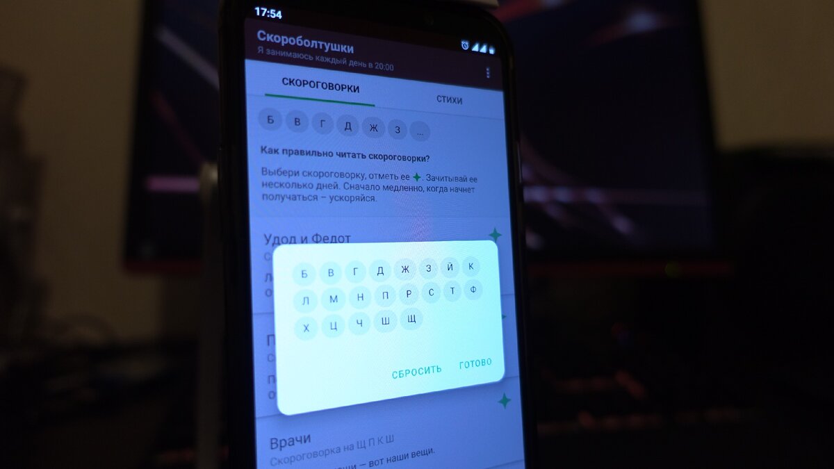 Скороболтушки – хороший сборник скороговорок и стихов, удобный поиск. Каждая скороговорка отмечена на проработку каких согласных звуков она направлена, так и происходит сортировка. Очень интересна возможность записи аудио и отправка своим друзьям, которые, к примеру, так же занимаются. Это хорошая мотивация и контроль стабильности. Стихи разбиты по авторам и так же удобно вести поиск. Стихов, к сожалению, не так много, как и самих поэтов. Наличие рекламы, которую нельзя убрать покупкой и неудобный способ просмотра скороговорок портит это приложение. Разработчику хочется пожелать дальнейшего улучшения приложения и успехов.