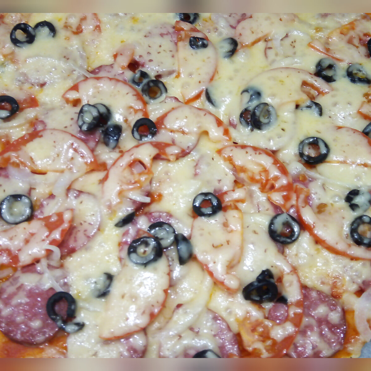 Были ли у вас ситуации когда звонит брат, сват или любимая кумушка и говорит: "я к тебе в гости". В холодильнике.... пусто....( а так хочется быть Богиней гостеприимства...)) На такой случай я всегда в морозилке держу кусочек сыра и колбаски. Остальные ингредиенты добавляю по мере наличия на кухне) Итак, попробуем успеть к приходу гостей. Продукты (на 1 пиццу): Для теста: Вода – 80 мл Дрожжи – 3г Сахар – 0.5 ч.л. Соль – 0.25 ч.л Масло растительное – 1 ст.л Мука – 150 гр Для начинки (кол-во по желанию все зависит от вкусовых предпочтений). Моя начинка: Томатная паста Колбаса полу копченая Лук Помидоры Маслины Сыр Процесс приготовления: В миску налейте тёплую кипячёную воду, всыпьте сахар и сухие дрожжи. Перемешайте. Дайте постоять минут 5. Добавить растительного масла. Всыпать муку, замесите тесто. Соберите тесто в шар, накройте миску чистым кухонным полотенцем и поставьте в тёплое место на 30 минут. Противень застелить бумагой для выпекания. Раскатать тесто в круг диаметром около 25