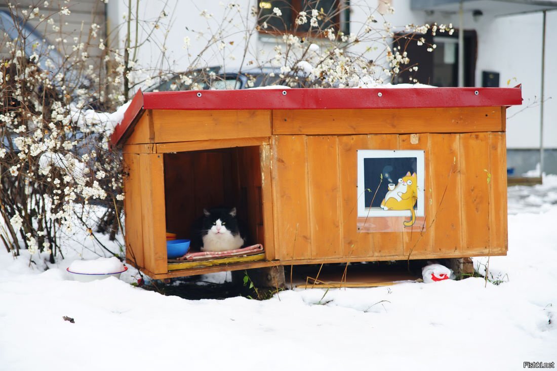 Похоже на курятню, правда, там спят котейки. Это все на улице, и любая бродячая кошка может зайти туда.