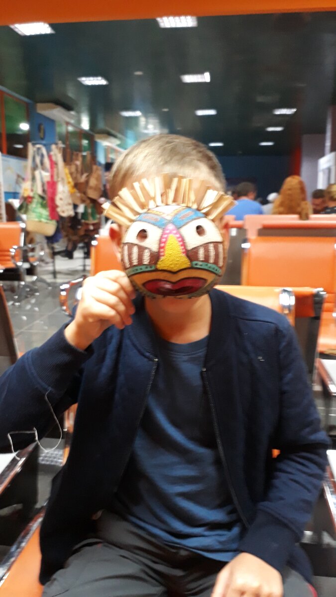 Коля учит английский язык второй год. В школе у них уроки два раза в неделю, и они там почти ничего не делают. Я пытаюсь как-то восполнить этот пробел во время летних каникул, а также по вечерам в учебные дни. И вот наконец он оказался в том месте, где можно на практике применить свои знания – в Кубинском отеле. В отельном магазине он регулярно практиковал фразу «How much?», прицениваясь к брелкам, игрушечным барабанам и прочим сокровищам. Напитки в столовой его не устраивали, поэтому во время всех завтраков, обедов и ужинов он бегал в соседний бар, говорил «Orange smoothie, please!» и приносил добытый напиток в столовую. Однажды его там долго не замечали и не обслуживали, он потом еще полдня возмущался. Но потом научился привлекать к себе внимание барменов, и жизнь наладилась. Вершиной Колиного владения языком стала гипотетическая проблема. За 2 дня до отъезда он вдруг решил исследовать дверной замок. Дверь сама запирается при захлопывании и открывается пластиковой карточкой. Но з