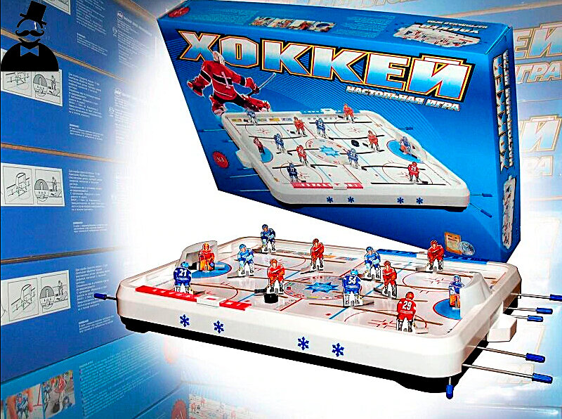 Здравствуй дорогой читатель! Рад приветствовать тебя вновь на моем канале. Вы попали на мужскую территорию, а значит будем разговаривать про предметы, которые помогут в обиходе настоящему мужику. Сегодня поговорим о предмете, который как мне кажется был у каждого мальчишки. Помните настольную игру, которая собирала вокруг себя детей любого возраста? Наверное вы догадались, это настольный хоккей. Помню как родители подарили нам с братом эту игру на день рождения и мы часами могли играть, и не замечать время. Сначала за одну команду, потом за другую. Турниры, фамилии известных хоккеистов, все то, что так притягивало к этой игре. Что включает в себя комплект хоккея? Размеры коробки 745*465 мм, весит 2,8 кг. Наклейте на пластмассовые фигурки формы игроков красного или синего цвета. Вставьте их в специальные пазы и с помощью специальных ручек лихо управляйте спортсменами. Игра развивает в ребенке моторику рук, развивает спортивный дух, дарит кучу положительных эмоций, снижает зависимость