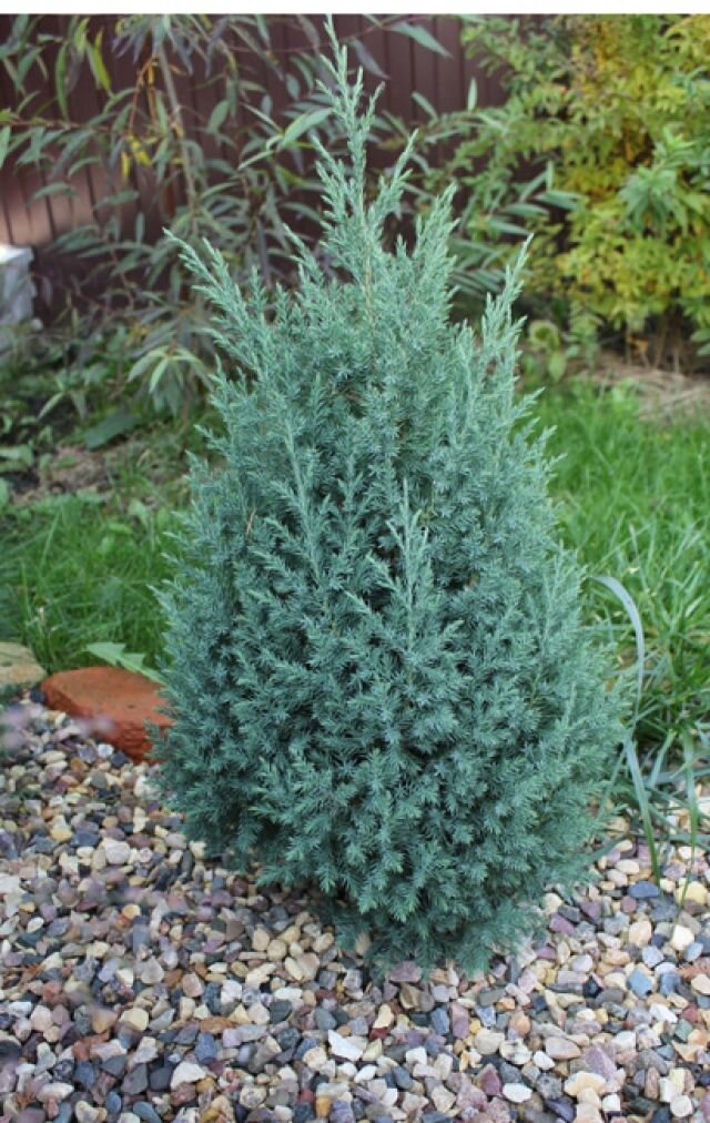 Речь пойдет о можжевельнике китайском "Стрикта". Это неприхотливый голубой хвойник, вырастающий до 2.5 метров в высоту и до 1.5 метров в диаметре. Такого красавца зимой можно наряжать вместо елки. Традиционно пользуется спросом у ландшафтных дизайнеров. Его можно посадить и как солитер, и как один из элементов красивой композиции. Отлично сочетается с многолетними цветами, кустарниками. Также подойдет для формирования живой изгороди. Этот можжевельник неприхотлив, морозоустойчив и засухоустойчив. Относится к двудомным растениям, мужские - более колоновидные, женские - растрепанные, с образованием ягод ближе к осени. Этот хвойник медленнорастущий, примерно по 5-7 см в год. Его необходимо опрыскивать в жаркую погоду, желательно утром или вечером. Подкормки тоже надо производить, лучше опрыскиванием по хвое, 1 раз в 2 недели. Самый лучший способ размножения - черенкование. На зиму, чтобы избежать деформации кроны от тяжести снега, его нужно обвязывать веревкой по всему диаметру. Немаловаж