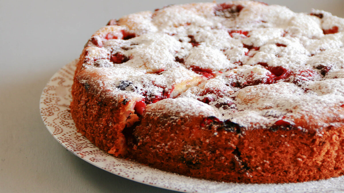 Вкуснейший пирог на сметане, готовиться очень быстро из простых продуктов, которые всегда в холодильнике. Рецепт пирога с вишней очень прост и не потребует от вас много времени. Просто все смешайте и готово. Ингредиенты Яйца -2 шт. Сахар -250 г. Сметана-200 г. Масло подсолнечное 80 г. Соль -1/4 ч.л. Разрыхлитель -2 ч.л. Мука 260 г. Замороженные фрукты (у меня вишня и клубника) – 200 г. Сахарная пудра (для украшения) Подробный видео рецепт можно посмотреть на моем YouTube канале milkshut. Заходите и готовьте с удовольствием.