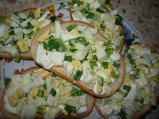 Данные бутерброды я готовлю, когда охота чего то простого и быстрого) Нам понадобится: 3 вареных яйца,батон,майонез ,соль, 1 зубчик чеснока ,и зелень(укроп,петрушка,лук зелёный) Приготовление: Режем мелко яйцо,зелень.Чеснок -через чеснокодавку. Смешиваем все ингредиенты с майонезом и выкладываем на батон. Батон можно немного обжарить и получится еще вкуснее)Все,наши бутерброды готовы! Прияткого аппетита))