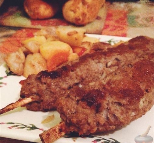 Быстрый домашний люля-кебаб. Ингредиенты : Фарш мясной - 400 г Лук репчатый - 2 средних Приправа хмели-сунели Кроме продуктов: Деревянные палочки - мне понадобилось 3 шт. Процесс приготовления : 1.Лук мелко нарезать, смешать с фаршем, добавить приправу по вкусу. Очень хорошо перемешать руками. 2.Налепить фарш на палочки, выложить на фольгу, смазанную растительным маслом. Завернуть кебаб в фольгу и поставить в духовку на 30-40 минут, периодически переворачивая Приятного аппетита!