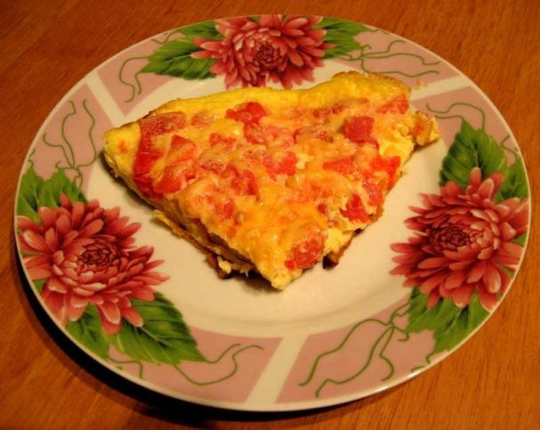 Простой и вкусный завтрак. Омлет с помидорами получается весьма нежным,сытным, питательным, сочным и вкусным - самое то, что надо в начале дня. При желании, сюда же можно добавить ветчину, бекон или сосиски - так будет еще вкуснее и сытнее. Для приготовления блюда нам потребуются: Когда у нас есть всё необходимое,можно приступать к готовке. Для начала в мисочке венчиком взбиваем яйца. Добавляем к яйцам муку, молоко и соль, еще раз хорошенько взбиваем до однородности. Натираем на крупной терке сыр. Помидоры нарезаем кубиками или просто режем на маленькие кусочки В сковороде разогреваем немного растительного масла. Затем выкладываем на нее помидоры, около минуты обжариваем, затем выливаем яичную массу. Жарим омлет под закрытой крышкой на медленном огне до готовности. За минуту-две до готовности посыпать тертым сыром. Вот всё и готово!Приятного аппетита! )