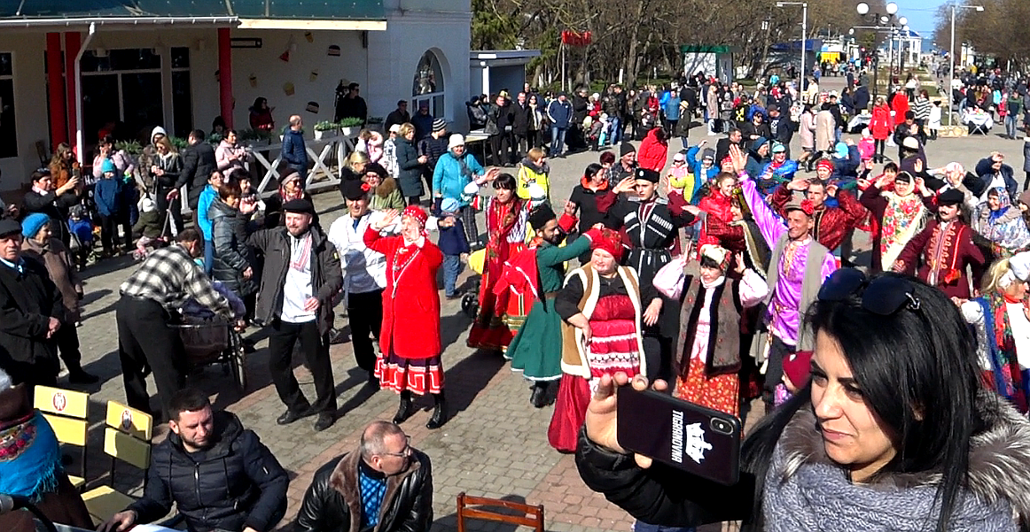 Черноморское Масленица Прощёное воскресенье Встреча Весны Масленица — восточнославянский традиционный праздник, отмечаемый в течение недели перед Великим постом, сохранивший в своей обрядности ряд элементов славянской мифологии. В народном календаре восточных славян праздник маркирует границу зимы и весны, а также Мясоеда и Великого поста. Аналог карнавала в европейских странах. Масленица сродни «жирному вторнику» и Мясопусту у католиков. В календаре Русской православной церкви этот период называется Сырной седмицей. Названия Мясопуст, Неделя мясопустная и Сырная неделя на Руси употреблялись только в святцах как «церковные». Дата Масленицы меняется каждый год в зависимости от даты празднования Пасхи. Традиционные атрибуты народного празднования Масленицы — чучело Масленицы, забавы, катание на санях, гулянья; у русских — блины и лепёшки, а у белорусов и украинцев — вареники, сырники и колодка. В древнерусских письменных памятниках термины с корнем масл - для обозначения Сырной н