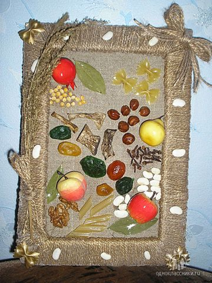 Пано смотрится очень эффектно. Из чего сделано все видно наглядно. А фрукты из набора по типу папье маше.