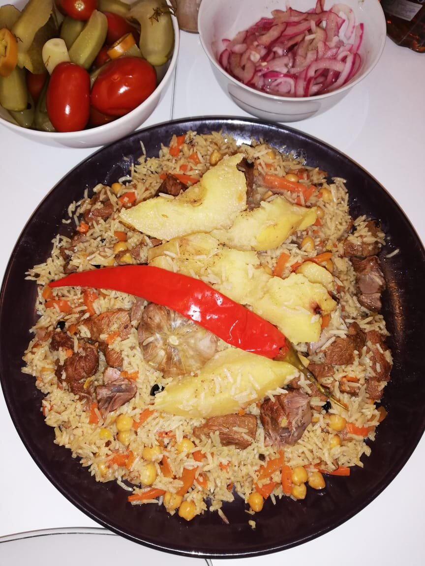 Приветствую друзья!Сегодня хочу поговорить о плове.Есть огромное множество рецептов плова,и каждый имеет право на существование.Так как в разных городах и странах его готовят с небольшими,но все же отличиями. Итак,с чего начинается плов? С хорошего настроения,приправленного желанием приготовить его,и качественных продуктов! Пропорции плова 1 к 1, а значит что на киллограм мяса,мы берем киллограм моркови и столько же риса.Рис ни в коем случае не используем пропаренный.Я предпочитаю покупать на рынке,сорт девзира или лазер.Но за неимением такого,можно воспользоваться обычным рисом для плова из любого магазина.Кроме моркови,риса и мяса,которых нужно по киллограму,на понадобится растительное масло 200 мл,и три средних луковицы.Из приправ соль,черный перец,барбарис и королева плова зира(кумин). В разогретое масло опускаем лук,порезанный полукольцами,и обжариваем до хорошей коричневой корочки.Чем темнее лук,тем темнее плов. Затем туда же отправляется мясо.Мясо может быть любым на ваш выбор.
