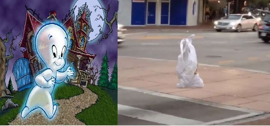 Помните маленькое приведение- Каспер? На улицах города дорогу переходило пакет-приведение.Интересно кто это на самом деле сбой матрицы или же все таки Каспер решил прогуляться. На Ютубе появилось видео с мусорным пакетом который на собственных ногах переходил дорогу. Все это очень похоже на маленького человечка с пухленькими ножками который неуверенно идет под порывами ветра. Позже подобное видео было опубликовано и в Instagram: А как вы считаете ,что это за маленькое привидение?К нам прилетел Каспер или же матрица дала сбой?