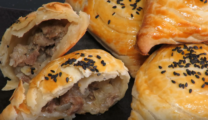 Масло сливочное для слоения теста — 80 г (растопленное) Ингредиенты для начинки: Мясо (баранина, говядина и др.) — 400 г
