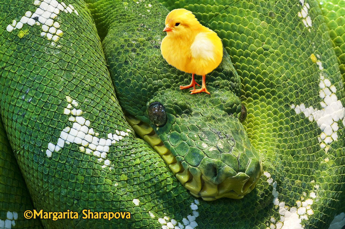 Однажды в зоопарке я увидела удава в террариуме. На его голове под инфракрасной лампой трепетал и пищал цыплёнок. Удав не реагировал. Неподвижность, остановившийся взгляд в пространство, ноль эмоций. Но ситуация вызывала ужас. Цыплёнок, совсем недавно вылупившийся из яйца, только что бывший среди тысячи своих собратьев, вдруг определён роком в пищу хищнику, но сам ещё не понимает полностью трагедии: кричит, зовёт на помощь, ему плохо, страшно. Надеется на спасение, но помощь не придёт. Рядом лишь удав, который уже съел пару цыплят, сыт, спокоен, знает, что ещё имеется пища. Цыплёнок для него просто еда, не вызывающая сочувствия, жалости.