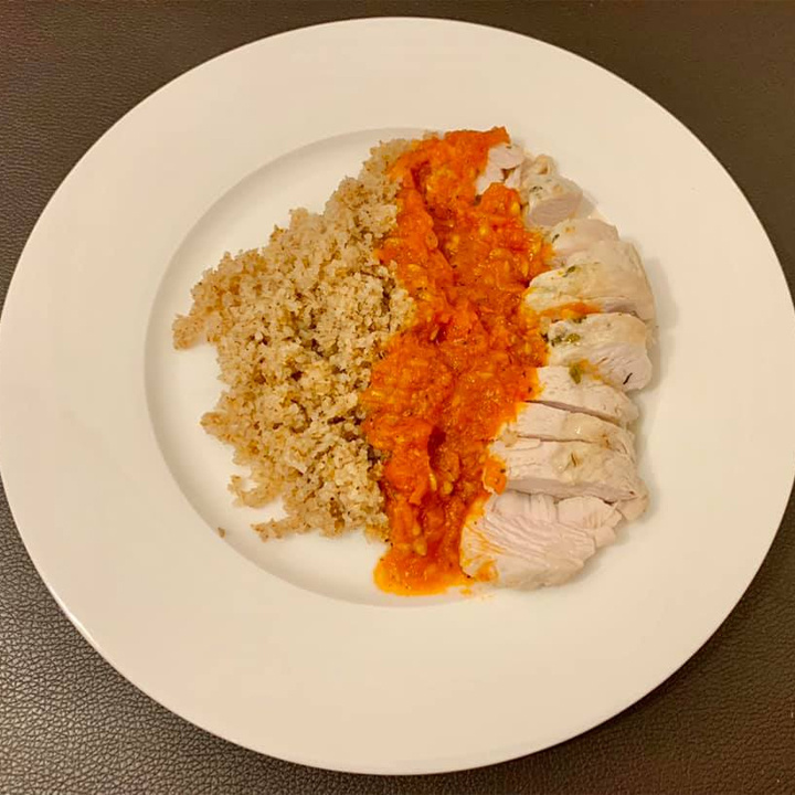 Томаты потереть, влить в сковороду, посыпать травами, уменьшить огонь. Потомить пару минут. Когда будет все готово, полить индейку и булгур соусом. Чем полезно это блюдо (на тарелке по 100 грамм индейки и крупы): содержанием белка, примерно 27,5 г, жира -+ 17 г, пищевыми волокнами. Также большое количество углеводов в крупе - 74,8 г. Порцию крупы можно уменьшить. Пожалуй, всё. Приятного аппетита! + 3 фото Больше общения и рецептов - в группе "Рецепты для диабетиков" в Facebook, или в группе ВКонтакте! Рецепт на странице в Facebook Автор рецепта - Катерина Перепелица