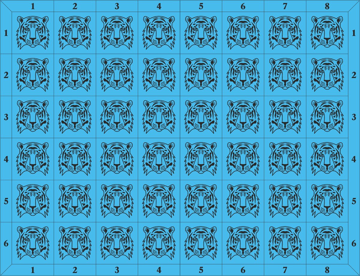 Здравствуйте. Один из 42 тигров отличается от всех остальных. Посмотрите внимательно на картинку и найдите какой отличается.