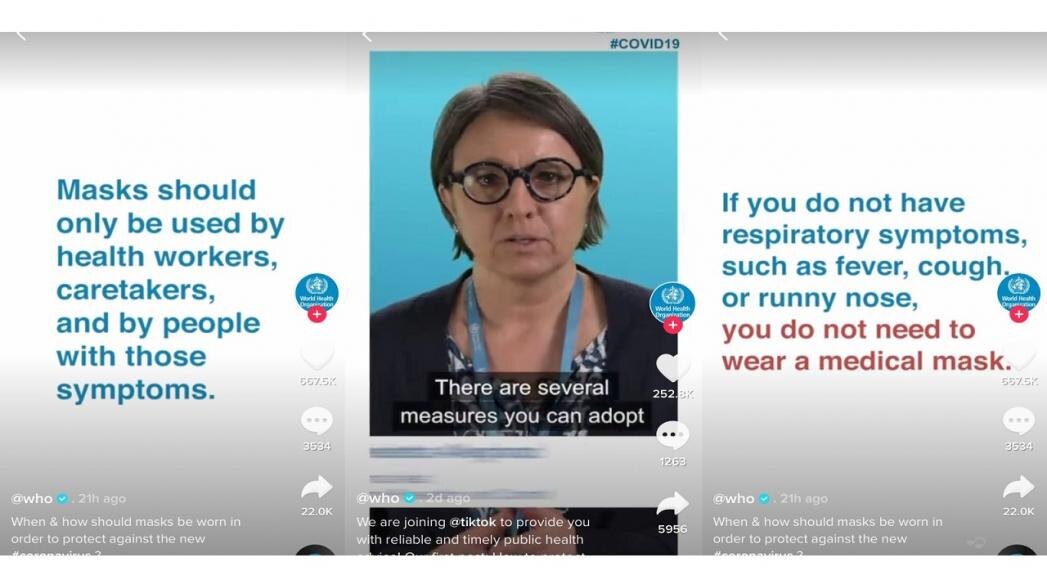 ВОЗ также использовала TikTok для предоставления информации и рекомендаций о том, кто должен носить маски для лица, поскольку спрос на них резко увеличился по мере того, как растет страх перед распространением вируса. Хотя медицинские специалисты утверждают, что они не эффективны в предотвращении распространения вируса и в них нет необходимости. В своем втором видео, размещенном в прошедшую субботу, ВОЗ подробно описала, когда и почему люди должны носить маски для лица.