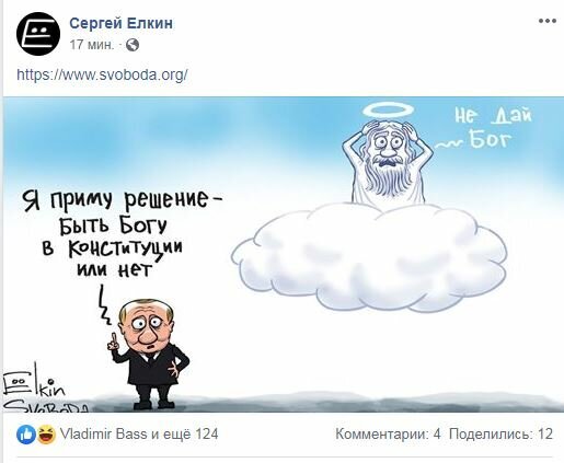Россияне удивились немного тому факту, что бог в нашей стране стал зависим от президента России Владимира Путина заметил лидер группировки «Ленинград» Сергей Шнуров. Он высмеял президента России Владимира Путина за желание внести поправку о Боге в Конституцию России. По его словам, россияне немного удивились тому, что в нашей стране бог стал зависим от властей. «Попы примолкли в своей нише и курят ладан, все в дыму. Захочет Путин — бога впишет, а не захочет — фиг ему… Теперь давайте ближе к сути. Всем ясно, как российский МРОТ. Богов благословляет Путин, ну и никак наоборот», — говорится в стихотворении. Опубликовал Михаил П. Подписывайтесь на наш канал - Геополитика: сценарии и прогнозы