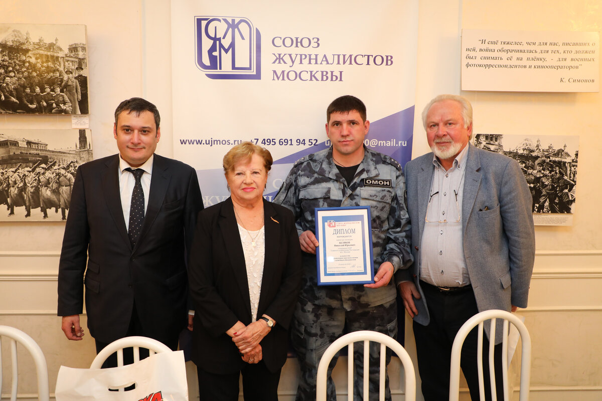 На встрече присутствовали председатель Комитета Государственной Думы Федерального Cобрания Российской Федерации по информационной политике, информационным технологиям и связи Александр Хинштейн, заместитель министра обороны – начальник Главного военно-политического управления Вооружённых сил РФ генерал-полковник Андрей Картаполов, председатель Союза журналистов Москвы Павел Гусев, первый секретарь организации Людмила Щербина, представители центральных средств массовой информации силовых и правоохранительных структур Российской Федерации.