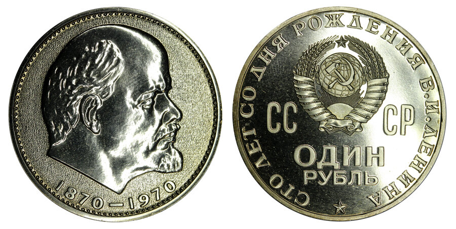 Действительно, столько легенд и мифов не связано больше ни с одной другой монетой. Что уж говорить, если даже в наши дни нумизматы не пришли к единому мнению, какую из сторон этого рубля называть аверсом, а какую реверсом. Также нет единого подхода к систематизации вариантов чеканки юбилейной монеты. А по особенностям изображений сторон и гурта она насчитывает несколько десятков разновидностей. Стоимость лотов "100 лет Ленину" начинается от нескольких современных рублей и достигает миллионов. От чего зависит цена? В апреле 1970-го денежная масса в обращении увеличилась на 100 миллионов экземпляров монет номиналом 1 рубль с изображением портрета В. И. Ленина, изготовленных Ленинградским монетным двором. Гигантский тираж включал 99 888 750 монет с качеством чеканки АЦ и 111 250 металлических рублей улучшенного качества чеканки. Несмотря на то, что с момента выпуска монеты 1 рубль 1970 года прошло более 40 лет, монета с профилем Владимира Ульянова (Ленина) не имеет высокой стоимост