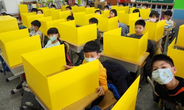 Ученики сидят за разделительными досками, когда они посещают занятия в начальной школе в Тайбэе. Школа подготовила доски, изготовленные из гофрированного картона , для предотвращения заражения коронавирусом, когда ученики разговаривают, кашляют, чихать или обедать в классе. Королева Елизавета II носит перчатки, когда награждает командующего Орденом Британской империи мисс Энн Крэйг, известную профессионально как актриса Венди Крэйг, во время церемонии инвестирования в Букингемском дворце в Лондоне. Букингемский дворец отказался подтвердить, принимает ли королева меры предосторожности из-за вспышки коронавируса. Спасательные службы Пакистана проверяют температуру тела человека во время учений в качестве меры профилактики распространения коронирусного вируса COVID-19 в Пешаваре Рабочий дезинфицирует игровое оборудование в детском саду, поскольку возвращение учащихся задерживается из-за новой вспышки коронавируса в Ганьчжоу, провинция Цзянси, Китай Лечебный магазин, рекламирующ