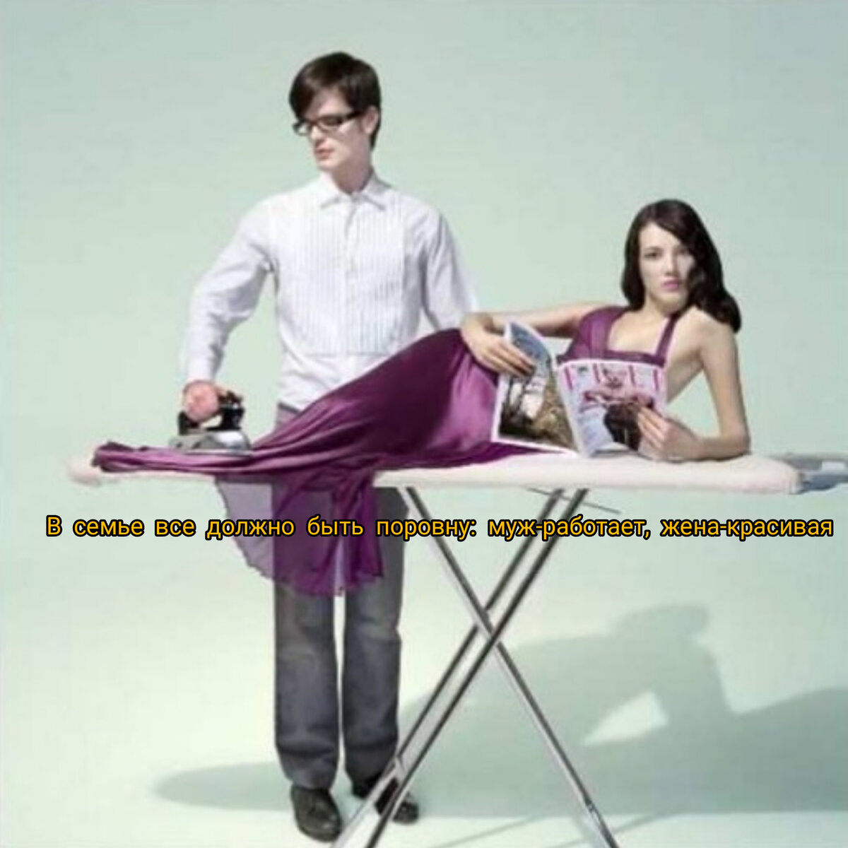 Бытует два лагеря: 1. "Я женщина, а не посудомойка" (все умею, но не хочу, не буду) и 2. "Принимай меня такой" (ничего не умею и даже начинать не стану). И оба мнения яростно обсуждаются в попытках найти правое и поставить всех баб на какое-то мистическое "свое" место. Совместный быт определяет многое в отношениях, но он ведь на то и СОВМЕСТНЫЙ! Каждая пара выбирает, обговаривает удобную для себя модель разделения обязанностей. А многие даже и без этого обходятся. Ведь если ты взрослый самостоятельный человек и давно оторван от маминой сиськи, ну что тебе сложно будет поднять самому носки с пола или помыть посуду? Зачем тыкать пальцем другому, кричав - " сделай!"? Ну будет он бояться вашего ора и каждый раз убирать, только потому что "лишь бы мозг не выносил(а)". Толку с этого? То что вы напрягаете друг-друга? Очень сомнительная позиция для счастливой совместной жизни. "Когда в товарищах согласья нет, На лад их дело не пойдет, И выйдет из него не дело, только мука", - И. Крылов На мо