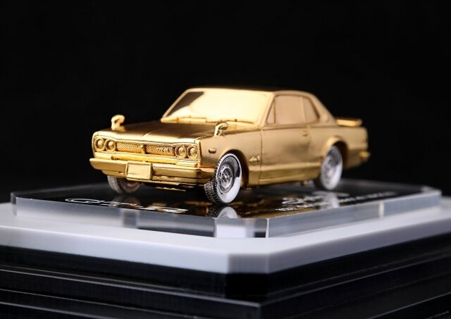 Существует кое-что, чего, вероятнее всего, нет даже у коллекционеров: Nissan Skyline Hakosuka GT-R, выполненная из 24-каратного золота. Да, это KPGC10 из золота, созданный в честь 50-летия Skyline GT-R, и он стоит столько же, сколько настоящий автомобиль. Ювелиры из Ginza SGC с 1945 года изготавливают прекрасные вещи из золота. Доступ к выставочному залу Ginza семьи Исикавы (которая и управляет предприятием) предоставляется только в ознакомительных целях. Как и следовало ожидать от ремесленников (японцы называют их kogei), которые являются сертифицированным национальным сокровищем Японии. Модель автомобиля выполнена из 24-каратного золота, а колёса – из чистого серебра. Доступны две версии: масштаб 1:32, 16-сантиметровая, 135-граммовая за 31000$ и масштабом 1:64 (Hot Wheels/Tomica), 10-сантиметровая, 48-граммовая версия за 12000$. Кёичи Исикава продолжает семейную традицию уже в третьем поколении.