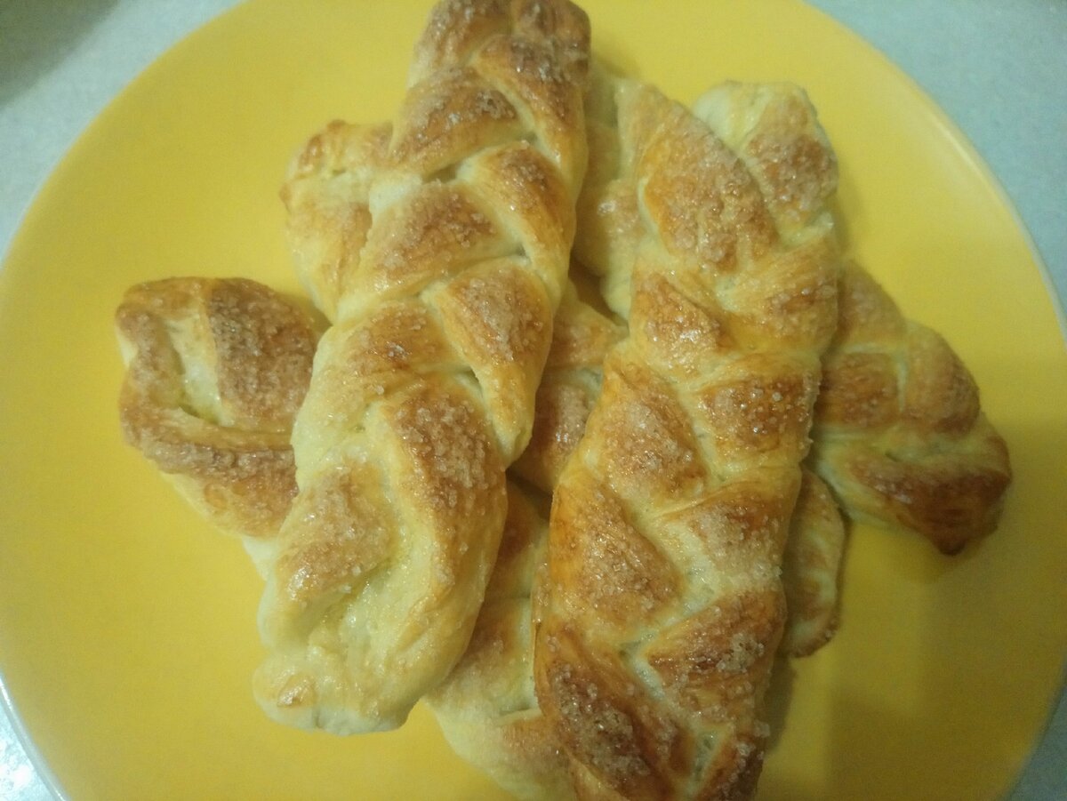 Гости на подходе, а у вас не с чем попить чай??? Тогда этот рецепт точно для вас!!! У меня на такой случай, всегда есть упаковочка теста в морозилке. А понадобится нам всего 3 ингридиента: Раскатываем тесто в тонкий пласт. Разрезаем на полоски, шириной в 1см и длиной примерно 10-12см. Полосок нужно кратно 3. Далее берём 3 готовые полоски, скрепляем их между собой с одного края. Далее заплетаем косичку и скрепляем концы. Выкладываем наши косички на противень, слегка посыпанный мукой (или смазанный маслом). Яйцо взбиваем венчиком, смазываем им наши косички. Сверху обильно посыпаем сахаром. В разогретую духовку ставим противень и выпекаем 15 мин при температуре 180-200гр. ( в зависимости от вашей духовки) Наши косички готовы! Желаю всем приятного аппетита) Если вам понравилась статья, ставьте лайки, пишите комментарии, подписывайтесь на мой канал...!