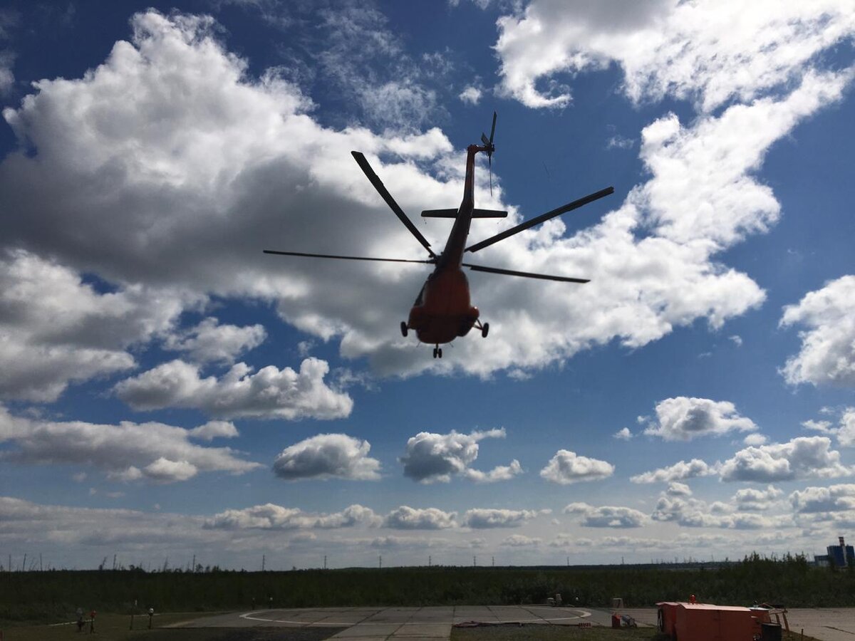 - Лететь дальше мы не можем, горы закрыты туманом. Снижаемся! - выкрикнул нам пилот вертолета и в скором времени посадил машину на небольшую зеленую поляну аэродрома Саранпауль. Аэродром довольно условный, просто утоптанное поле посреди болот.