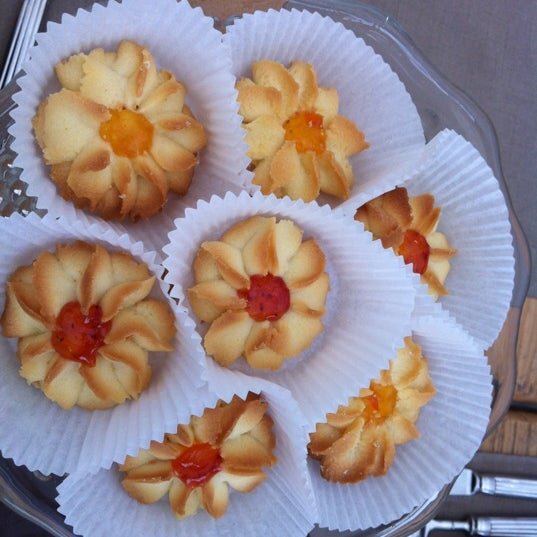 Ингредиенты Рецепт приготовления Размягченное сливочное масло комнатной температуры порубить ножом, а затем взбить миксером на средней скорости. Затем всыпать ванильный сахар и постепенно добавлять сахарную пудру продолжать взбивать. После этого в сладкую сливочную массу добавить охлажденный яичный белок и продолжать взбивать примерно 5 минут, постепенно увеличивая скорость вращения венчиков. Масса должна стать пышной и однородной. В просеянную муку всыпать разрыхлитель и хорошо перемешать. Затем всыпать постепенно мучную смесь в миску с масленой массой. Замесить однородное эластичное тесто. Готовое тесто переложить в кондитерский мешок. Противень застелить пергаментной бумагой и при помощи кондитерского мешка высаживать наше тесто на противень. НА ЗАМЕТКУ! Старайтесь отсаживать не слишком близко друг к другу. Из этого количества ингредиентов у меня получается 24 печенья. В центре каждого печенья сделать пальцем углубление и и заполнить его джемом. Отправить печенья в дух
