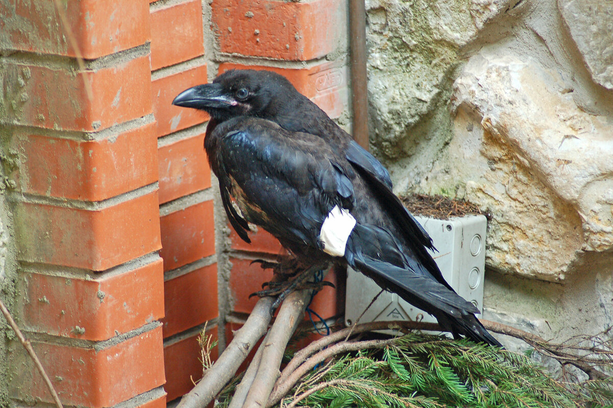 Рассказ прислан нашим читателем в рамках четвёртого сезона акции «Заработай на своей истории о птицах». Ссылку на условия акции вы найдете внизу страницы. Эта история случилась в 2010 году. В конце мая рабочие принесли с улицы птицу со связанными ногами... Из-под крыла сочилась кровь... Это был молодой ворон. Мы быстро нашли перекись водорода, йод и обработали ему крыло. Он ослаб, пришлось положить его в большой клетке. Дали ему воды. От еды он отказался. На следующий день ворона повезли к ветеринару. Его вердикт,- птица летать не сможет, у него прострелено крыло... Крыло зафиксировали. Ворон через день встал и немного приободрился. Решили сделать ему вольер в углу участка. Сверху была тонкая сетка, но улететь он все равно не смог бы. Птица на удивление быстро привыкла к моему присутствию и спокойно ожидала кормежки. Я поставила ему большой поддон с водой, в котором он пытался купаться. Назвали его Каркуша и он откликался на это имя! У Каркуши были любимые места в вольере,- он любил во