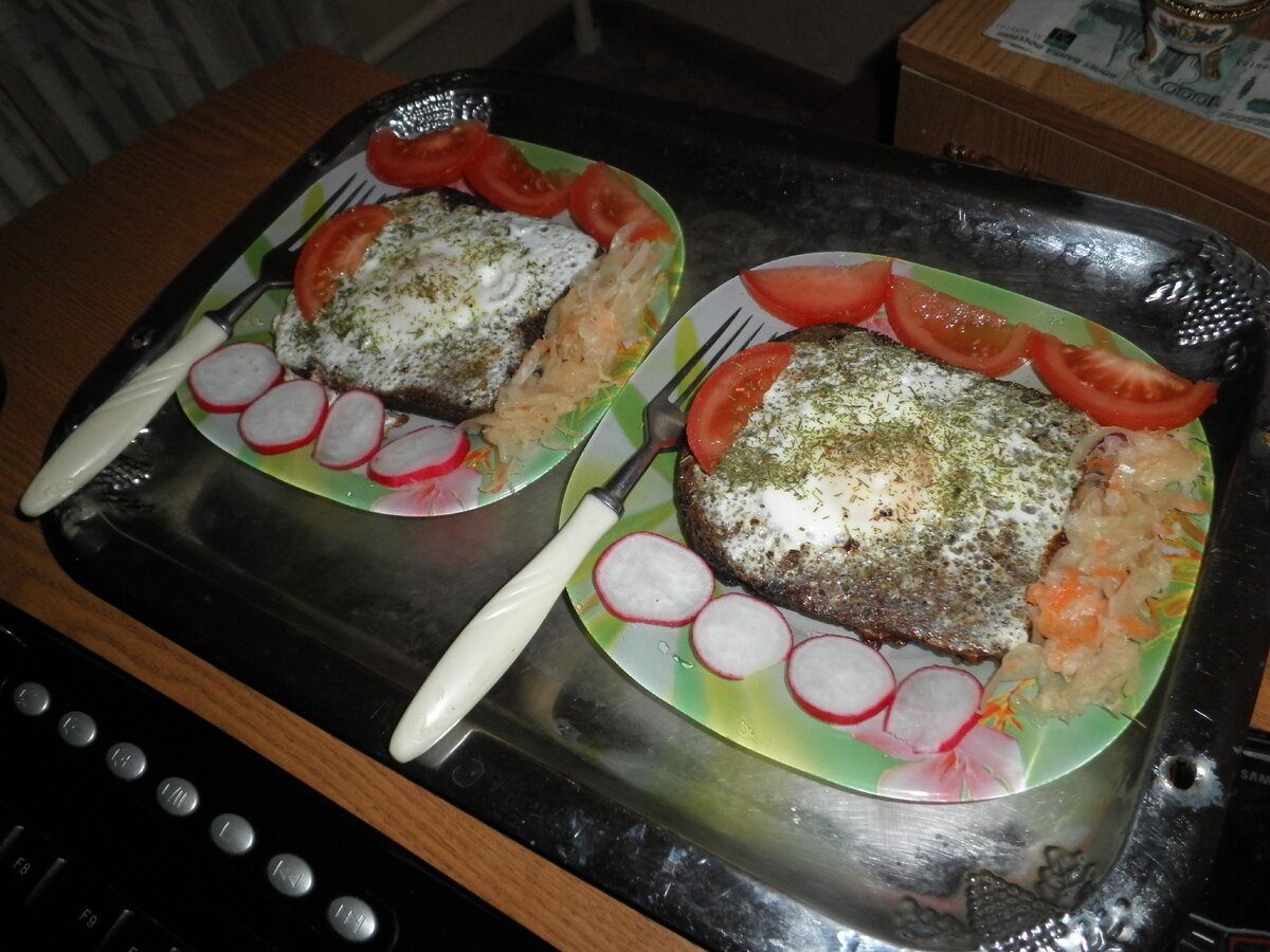 По пути с работы домой, либо на работу, всё таки придётся забежать в магаз за хлебом, хвала социалистическому прогрессу - хлеб есть практически на каждой точке по продаже продуктов питания, и соответственно необходимо будет затариться куриными яйцами, так как название "яичница" подразумева