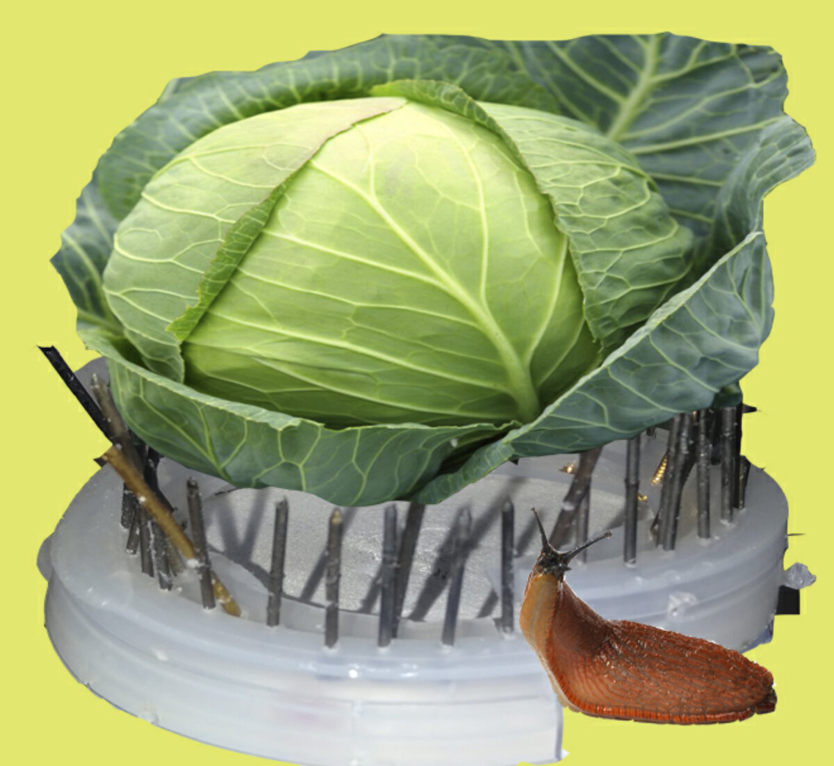 Прожорливые слизни - беда всех огородов. Больше всего страдают капустные грядки. Чтобы избавиться от слизней, мы сыпем химию, яичную скорлупу, словом, придумываем различные преграды. Но зачастую все наши действия приводят к нулю и слизни продолжаю хозяйничать и объедать овощи. Капкан для слизней своими руками Для того, чтобы сделать ловушку и не допустить обжор к овощной культуре понадобится полиэтиленовая крышка, мелкие гвозди и канцелярские иголочки. Вырезаем у крышки середину, размером с капустный ствол, если для перцев - то делаем окружность меньше. Затем берем маленькие гвоздики, разогреваем их ( я это делала на электрической конфорке) и плоскогубцами втыкаем горячие гвоздики по краям. Между ними, таким же способом, вставляем канцелярские иголки. Разрезаем сбоку крышку и капкан готов! Устанавливаем его вокруг основания, например, капусты, плотно прижав к стволу. Как только слизень захочет полакомится и у него каким-то образом получится взобраться по гвоздям, он непременно за
