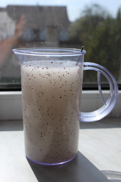 Это делается просто: варят жидкий кисель из воды и крахмала и охлаждают примерно до 40°. Выливают кисель в емкость и добавляют в еще горячий кисель семена.Выдерживают семена примерно 20 минут, периодически перемешивая.