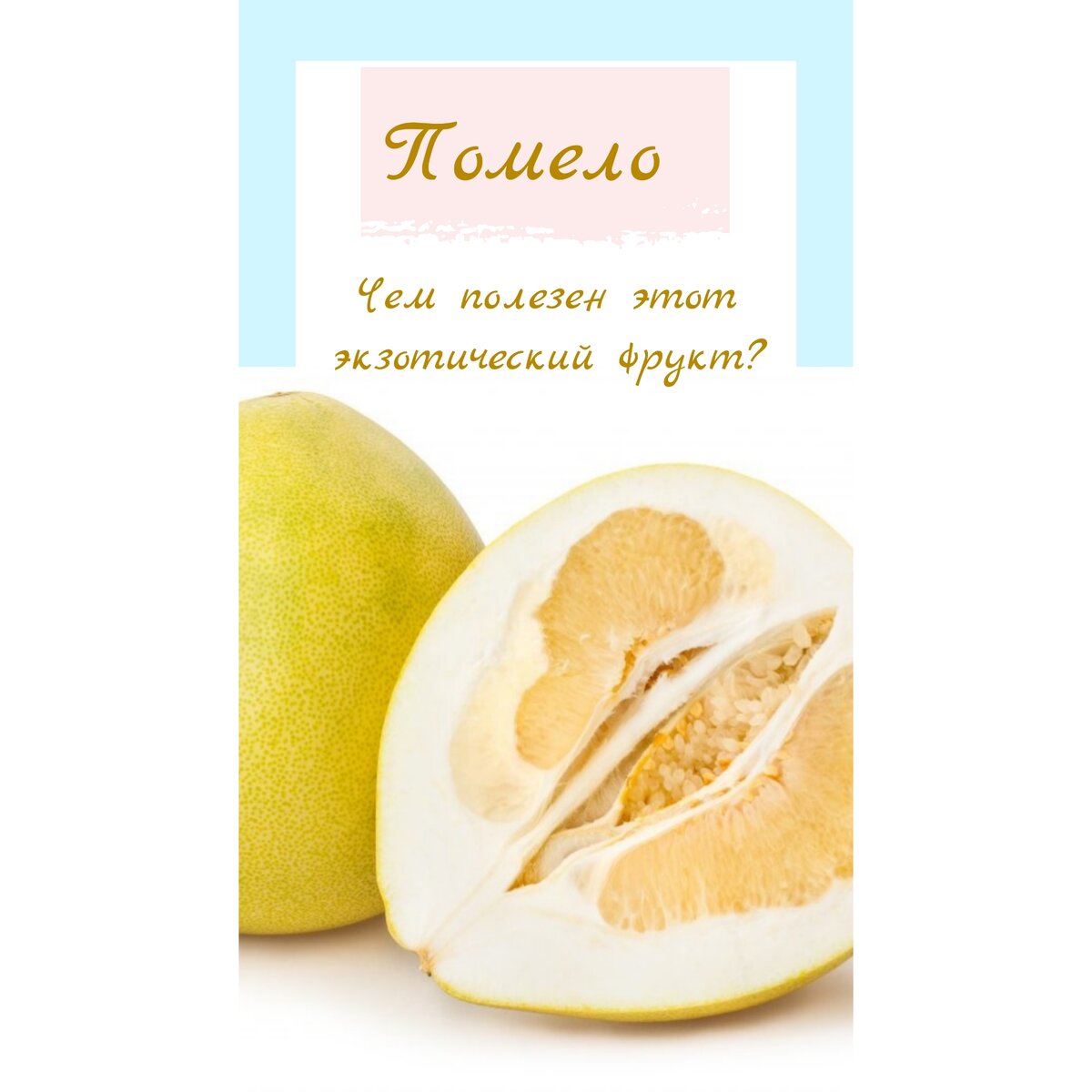 Помело является одним из больших представителей цитрусовых. Он обладает толстой мякотью, особым запахом и сладко-кислым вкусом. Этот чудо-фрукт содержит витамины B1, B2, B5, фолиевую кислоту,клетчатки, аскорбиновую кислоту и полезные масла. Помело помогает противостоять развитию раковых клеток. В его составе присутствуют лимоноиды, которые весьма препятствуют возникновению онкологических заболеваний. Помимо этого, помело имеет множество полезных свойств: Этот фрукт является хорошим выбором для морозной зимы: в периоде простуд и гриппов. Благодаря насыщенному содержанию витаминов, его часто применяют при устранении простудных заболеваний. Ускоряя обменные процессы, благотворно воздействует на пищеварительные процессы. Помело наполняет организм минерально-витаминным коктейлем, прибавляет сил и энергии. Этот чудо-фрукт особенно полезен представителям сильного пола,так как благотворно влияет на либидо и потенцию.