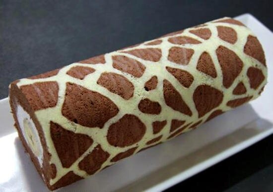 Ингредиенты: Куриное яйцо - 5 шт Пшеничная мука - 250 г Сахар - 250 г Какао-порошок — 75-100 г Сметана — 200 гр. Банан — 1 шт Соль - 1 щепотка ·Приготовление: Отрезаем кусок пергаментной бумаги по размеру формы для выпекания и рисуем на ней карандашом рисунок жирафа, так чтобы было хорошо видно. 2. Белки отделяем от желтков. 3. Яичные желтки хорошо взбиваем с сахаром (125 г) до получения густой устойчивой пены. 4. В отдельной емкости интенсивно взбиваем яичные белки с солью до плотной пены. Продолжая взбивать, постепенно добавляем вторую половину сахара. 5. Соединяем две яичные массы и перешиваем ложкой сверху вниз. 6. Затем порциями добавляем просеянную пшеничную муку, после каждой тщательно перемешиваем тесто сверху вниз. 7. В форму для выпекания сначала выкладываем белую бумагу (чтобы лучше был виден рисунок), а затем подготовленную пергаментную бумагу, так чтобы рисунок был снизу. Хорошо смазываем форму (дно и бока) растительным масло 8. Тесто выкладываем в кондитерский мешок