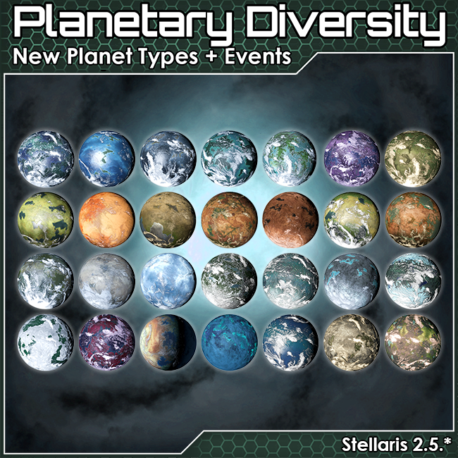 В томительном ожидании выхода Stellaris: Federations мой взор пал на мастерскую Steam. Не то что бы я имел что то против модификаций игр, но обычно старался обходить их стороной. С модам знаете ли ачивок нет, да и баланс зачастую летит в трубу. Но тут сорвался. В этой подборке я бы хотел вам кратко рассказать про 5 модов, с которыми я сейчас играю свою партию в Stellaris, и которых мне будет не хватать в IronMan. 1. Planetary Diversity Шикарнейший мод, который увеличивает число видов обитаемых планет. Причем это не просто цифры, но красивые арты и модели. 2. Diverse Rooms Мод сугубо графический, но очень важный. Добавляет более 80 новых вариантов фоновых картинок для ваших империй. Ну и само собой и для рандомных наций тоже. 3. Guilli's Planet Modifiers А вот этот мод уже влияет на геймплей. Он добавляет планеты рандомные модификаторы, которые придают им свои уникальные свойства. Появление тех или иных модификаторов напрямую зависит от типа планет. Совместим с Planetary Diversity.