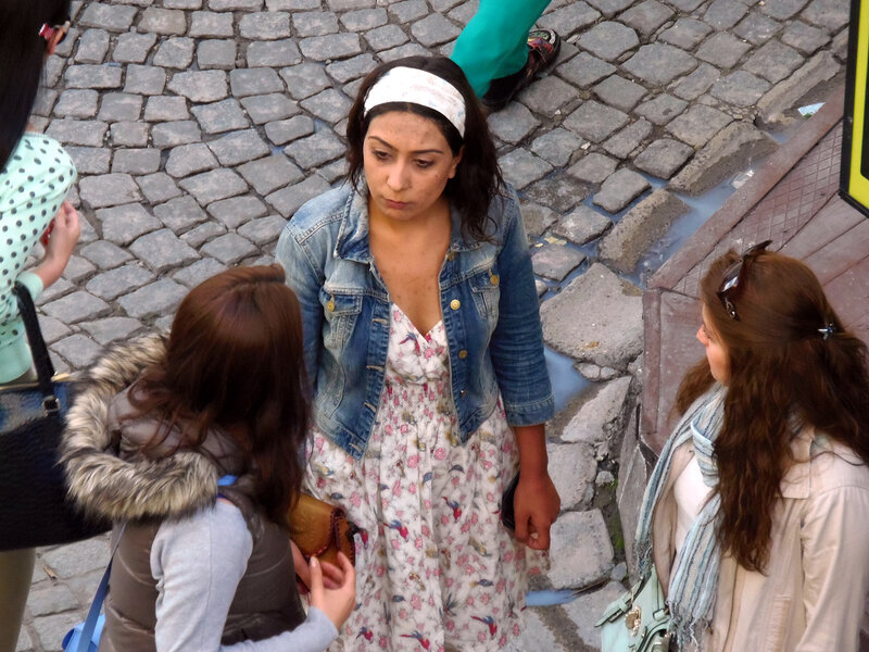 Городские картинки с улиц Стамбула из моего Живого журнала за 2014 год. В этом посте будут те самые уличные городские мелочи и сценки, что почти случайно попали в объектив. Никакой у них нет системы, просто фото из современного «Второго Рима». Когда мы были в Стамбуле зимой, то нам показалось, что в городе многовато туристов... Ха-ха-ха, знали бы мы, что тут творится в мае! Итак, зима... .. и лето. Тут и ночи теплые, людей много. Толстые хвосты очередей змеятся в цистерну Базилику. Зимой можно вообще без очереди пройти! Это не демонстрация, это туристы движутся в султанский дворец Топкапы. Бедные солдаты на входе! Совершеннейший интернационал. Японские туристы в «Мармарее». Интересно, они в своих кимоно везде ходят? Эмансипированные местные амазонки на мопеде. Стоит сказать, что в пробке стояли достаточно дисциплинированно, не шарахались между машин. Аборигены разъясняют... Торговля овощами. Это для туристов, конечно, местные покупают их несколько в других местах. Зимой там еще встре
