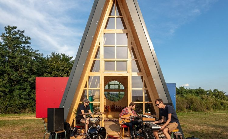 Расположенный недалеко от Чуромфельде, Венгрия, сборный мини-дом A-образной формы был построен из панелей. Остроконечная форма скатной крыши была вдохновлена традиционными горными домиками в чешском стиле, а внутреннее пространство может похвастаться современной эстетикой, благодаря двум сине-красным блокам, которые красиво контрастируют с экстерьером темно-черного цвета.