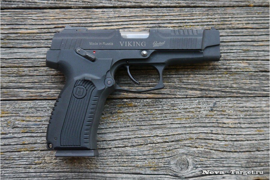 МР-446 Викинг создан на основе пистолета ПЯ для экспорта. Главное отличие Викинга от своего прототипа заключается в раме, изготавливающейся из полимера, а не из углеродистой стали. К менее значительным новшествам относятся пазы для крепления тактического фонаря или лазерного целеуказателя в передней части рамы, иная форма прицельных приспособлений и рычага затворной задержки. В остальном пистолет практически не отличается по конструкции от ПЯ. Автоматика работает по схеме использования отдачи при коротком ходе ствола. Запирание осуществляется при помощи снижающейся казенной части ствола, входящий своим прямоугольным выступом, расположенным над патронником, в окно для выброса стреляных гильз затвора-кожуха. Снижение происходит при взаимодействии наклонной поверхности внутреннего паза в приливе казенной части ствола с осью затворной задержки. Ствол производится из нержавеющей стали методом холодной ковки, а его канал хромируется. Ударно-спусковой механизм куркового типа, двойного дейст