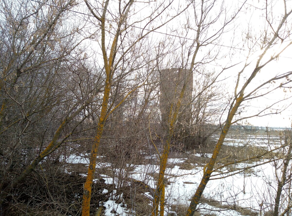Недавно, во время очередных покатушек по нашей области, увидели мы в одном селе старую водонапорную башню. Конечно же, мы решили остановиться и посмотреть, как же она выглядит вблизи. Башня эта находилась в зарослях кустарника. Мы ее с трудом заметили среди веток. Летом, когда все деревья покроются листвой, с дороги башню вряд ли уже увидишь. Пробраться к этой башне было не совсем просто. Снег хоть и начал таять, но все же где-то лежал. Пока я добирался до башни, все-таки немного он попал мне в кроссовки. А вот и сама башня. Кстати, она была не очень высокая. Но село, рядом с которым она стояла, находилось в низине, так что, в свое время она обеспечивала нужный напор. Башня эта была каменная. В первый раз такие вижу. Лишь только верхняя часть, где находился резервуар с водой, была сделана из красного кирпича. Возле входа в башню выросли целые заросли. Но, тем не менее, мне удалось заглянуть внутрь. А вот как эта башня выглядела внутри. Полы у неё уже не сохранились. Сразу у входа
