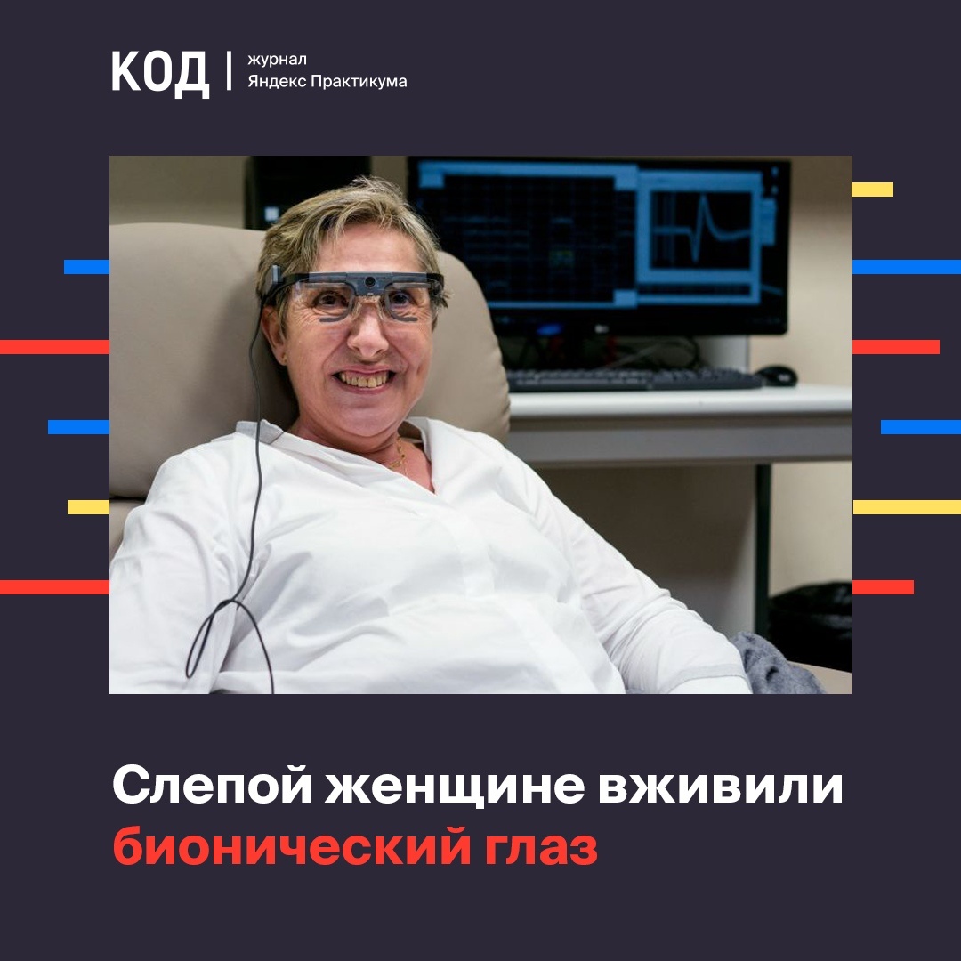 Женщине частично вернули зрение с помощью бионического глаза. Испанский нейроинженер Эдуардо Фернандез вживил его прямо в голову пациентки. Как это работает: есть пара очков с live-камерой, подключённой к компьютеру. Компьютер переводит прямую трансляцию в электронные сигналы. Сигналы передаются через порт, вживлённый в заднюю часть черепа женщины. Порт передаёт сигнал дальше — импланту бионического глаза, который установлен в зрительной коре головного мозга. После 6 месяцев испытаний глаз из испытуемой удалили. За это время она посещала лабораторию 4 раза в неделю, чтобы с помощью сложного оборудования «видеть» окружающий мир. Картинка получилась далеко не HD, но женщина различала буквы, свет, людей и даже сыграла в простую игру типа Pac-Man. Этот эксперимент впервые провели на человеке. В ближайшем будущем Фернандез планирует увеличить количество испытуемых до пяти.