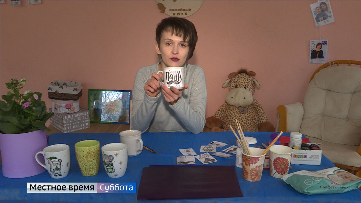 - Доброе утро, дорогие телезрители, меня зовут Василина Ионова и я расскажу вам как расписать керамическую кружку. Для работы нам потребуется обычная керамическая кружка, белая, без выпуклостей. Краски специальные акрил по керамике и стеклу. Кисточки различных диаметров. Перед тем как начинать работать, надо протереть кружку жидкостью для снятия лака, чтобы обезжирить ее. Чтобы расписать кружку не нужно быть художником, можно использовать трафареты. Замерить пространство, на котором вы рисуете, распечатать из интернета нужную картинку, подходящего размера и при помощи скотча, кальки зафиксировать на вашей кружке. У нас 23 февраля я для себя выбрала интересные несложны