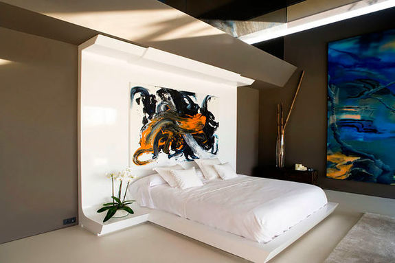 Криштиану Роналду. «Дом будущего» в Мадриде Огромный дом в 1700 квадратных метров и ценой чуть больше 5 миллионов евро находится на северо-западе города, окруженный уютным зеленым садом. Он словно создан в далеком 2300 году — и с первого взгляда напоминает то ли космический корабль, то ли авианосец; и только вечером, при гармоничной разноцветной подсветке, обретает очертания дома. Строгий стиль, мягкие изгибы деталей интерьера весело разбавляют абстрактные, яркие картины на стенах в холле. Вообще именно холл в этом доме призван обращать на себя внимание гостей. Единственная странность в доме — невысокие потолки во многих помещениях, в том числе в спальных комнатах, причем рост Роналду не самый маленький — 185 см. Впрочем, эта особенность дома с лихвой скрывается благодаря низкой мебели. Отдельное место имеется и у портрета покойного отца звезды Хосе Диниза Авейро (Jos? Dinis Aveiro), его футболист разместил в центральной части гостиной. Футбольная звезда, которая пять раз была