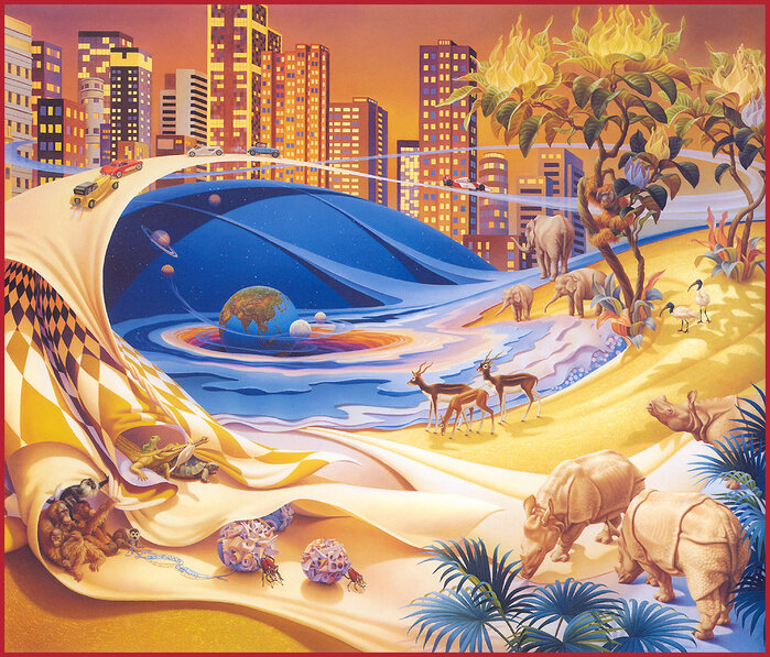 Картины современных и не очень современных художников Я вообще-то не очень люблю сюрреализм, но среди картин Ilene Meyer можно найти те, что мне понравятся. Во-первых, они яркие, во-вторых, нарисованы в приятной моему глазу цветовой гамме, в третьих, их интересно рассматривать. Еще один художник - Дмитрий Резчиков. Я, правда, не уверена, что он рисует сюрреализм, хотя вторая картинка вроде бы на это прямо намекает. Мне больше кажется, что тут сказочный реализм, когда духи природы - неотъемлемая картина реального мира. У этого художника свой собственный узнаваемый почерк, я думаю. Ну а дальше никакого сюрреализма, никакого абстракционизма, один простейший реализм, как на этом пейзаже ... или немножко импрессионизма, как на втором ... или, возможно, немного символизма. В натюрмортах это бывает: вино означает то, грецкий орех другое, персик с виноградом третье и четвертое, и невежда не поймет, а умный человек восхитится тонкой философией. Хотя на мой взгляд, это просто натюрморт без каки