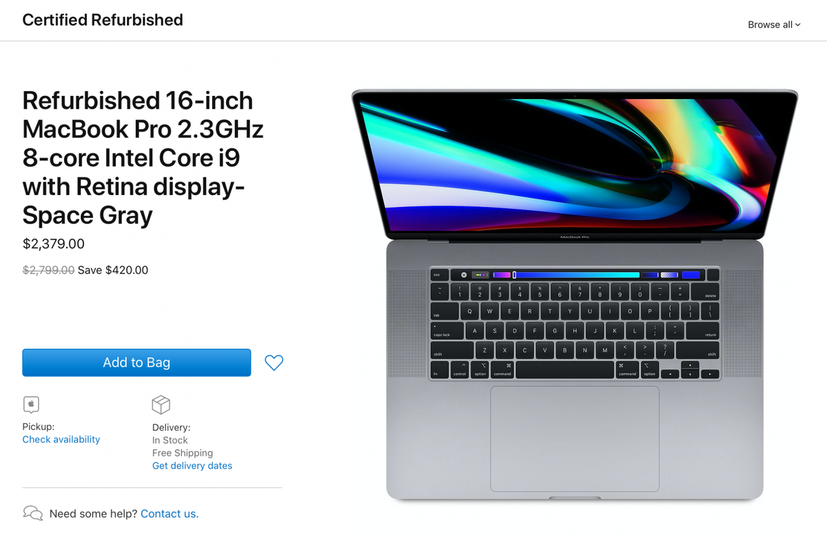 Apple начала продавать восстановленные MacBook Pro 16" с новой клавиатурой