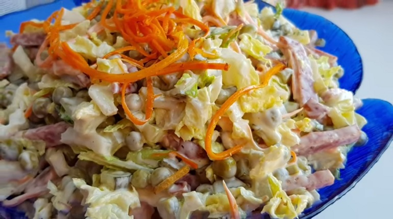 Салат «Быстрый», потому что готовится на скорую руку! Ингредиенты для него можно нарезать за считанные минуты! Идеальный вариант для тех, кому всегда не хватает времени или для тех, кто не любит долго возиться на кухне. Вкус салата в меру острый, в меру пикантный. Все будет зависеть от качества продуктов: и колбаса может быть разной по вкусу, и огурцы, и майонез. Майонез, конечно, лучше взять свой, домашний. Кстати, и корейскую морковь тоже можно сделать своими руками, и быстрые маринованные огурцы – не проблема. Надо только все подготовить заранее и убрать на хранение в холодильник: впереди много праздничных дней – все заготовки вам обязательно понадобятся. Необходимые ингредиенты: Как приготовить на скорую руку салат «Быстрый» Салат «Быстрый», приготовленный на скорую руку, станет для многих хозяюшек палочкой-выручалочкой: и во время праздничного застолья, и когда гости нежданно возникнут на пороге. Ничего заранее варить или жарить не нужно: достали из холодильника, нарезали в миску